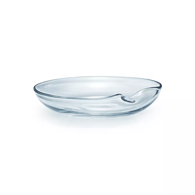Peretti’s Thumbprint design is one of her most famous creations. Dish in glass. 14" diameter. Original designs copyrighted by the Nando and Elsa Peretti Foundation.