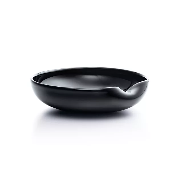 Dish in black handblown Venetian glass. 11" diameter. Original designs copyrighted by the Nando and Elsa Peretti Foundation.