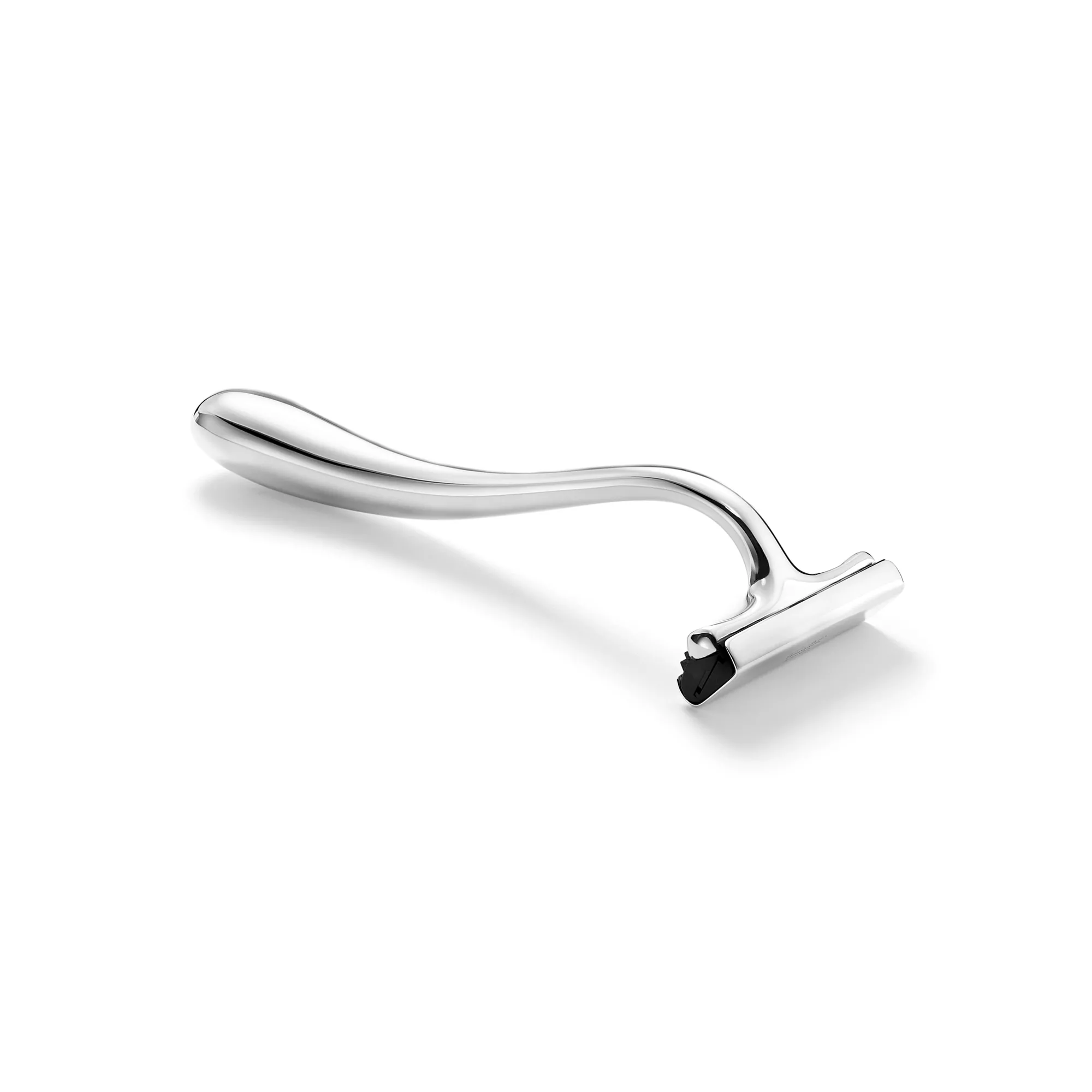 Fluid lines for the well-groomed man. Razor in sterling silver. 4.5" long. Original designs copyrighted by the Nando and Elsa Peretti Foundation.