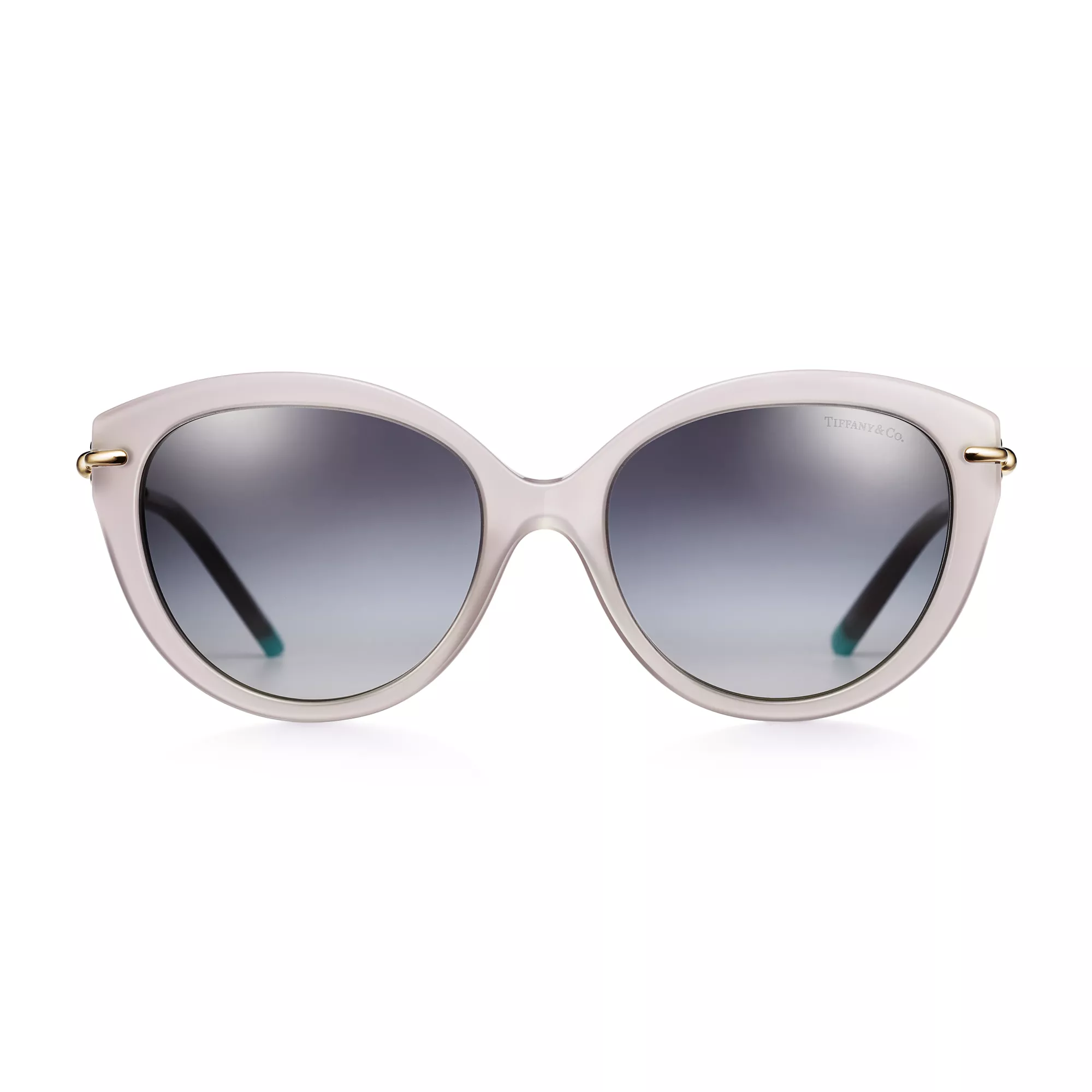 Tiffany HardWear is inspired by the attitude and energy of New York City. Drawing from the design codes that define the jewellery collection, these cat eye-shaped sunglasses feature the signature gauge link as a bold accent. Graphic and unexpected, this style is precisely crafted with opal grey acetate, gradient gray lenses and a touch of Tiffany Blue®.