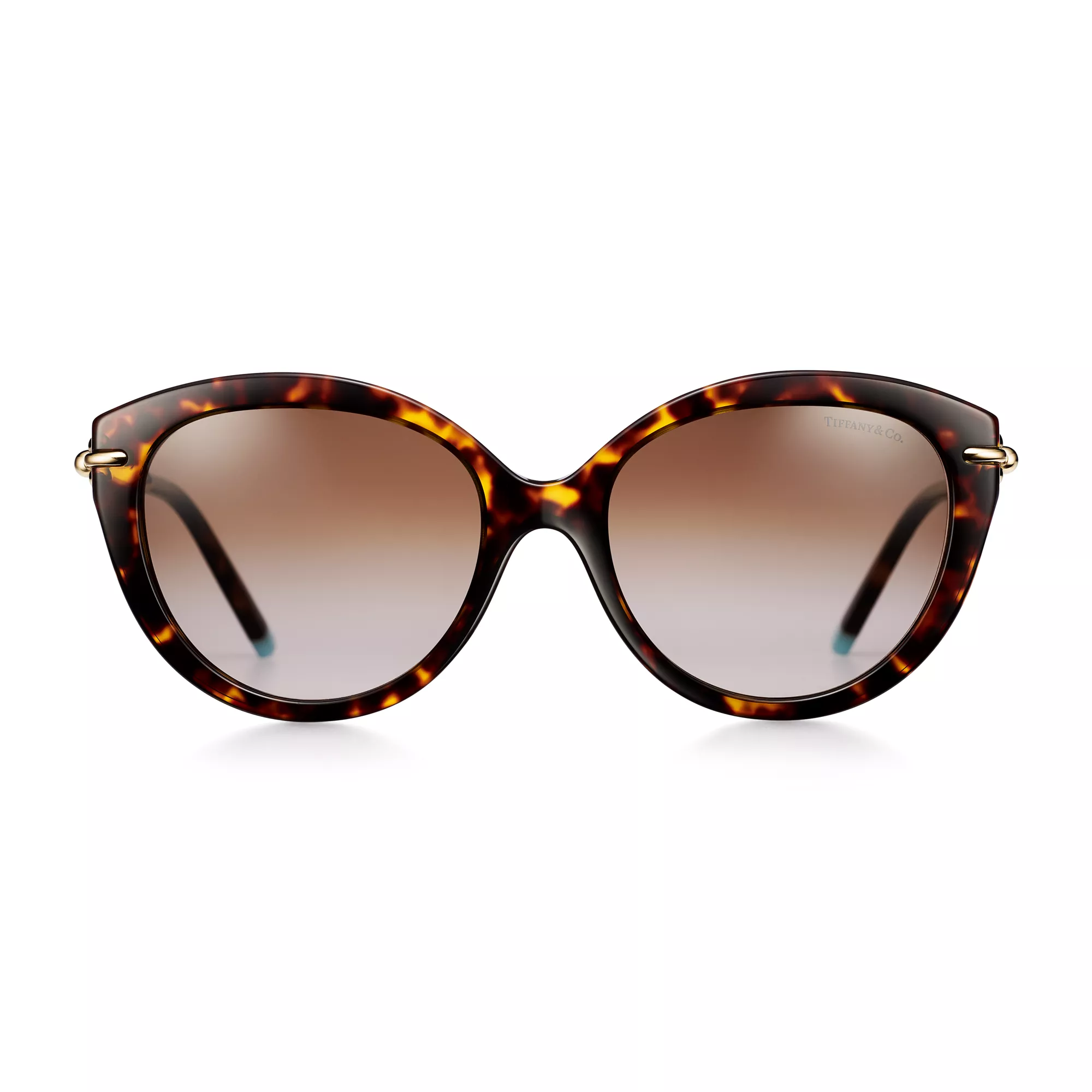 Tiffany HardWear is inspired by the attitude and energy of New York City. Drawing from the design codes that define the jewellery collection, these cat eye-shaped sunglasses feature the signature gauge link as a bold accent. Graphic and unexpected, this style is precisely crafted with tortoise acetate, gradient brown lenses and a touch of Tiffany Blue®.