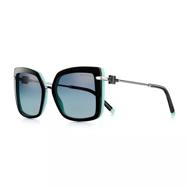 Defined by a sleek T motif, a signature House code, Tiffany T designs are a tangible reminder of the connections we feel but can't always see. Oversized square frames get a sleek update with black enamel T accents and a touch of Tiffany Blue®.