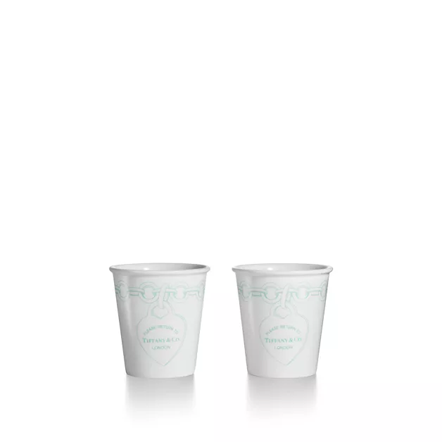 Inspired by a key ring we debuted in 1966, the Return to Tiffany collection is famous for its signature motif. Crafted in bone china, this contemporary set of two coffee cups features an etched heart tag and chain detail in our iconic Tiffany Blue® hue.