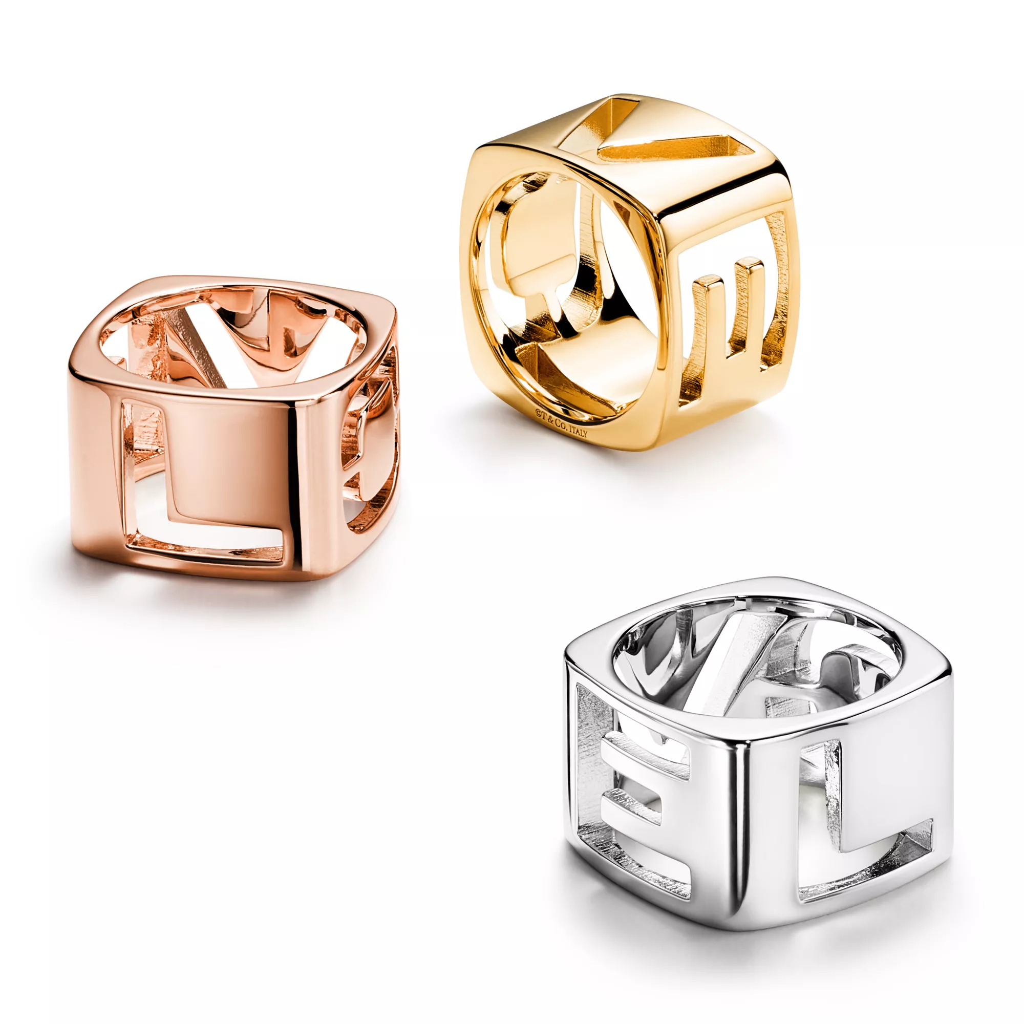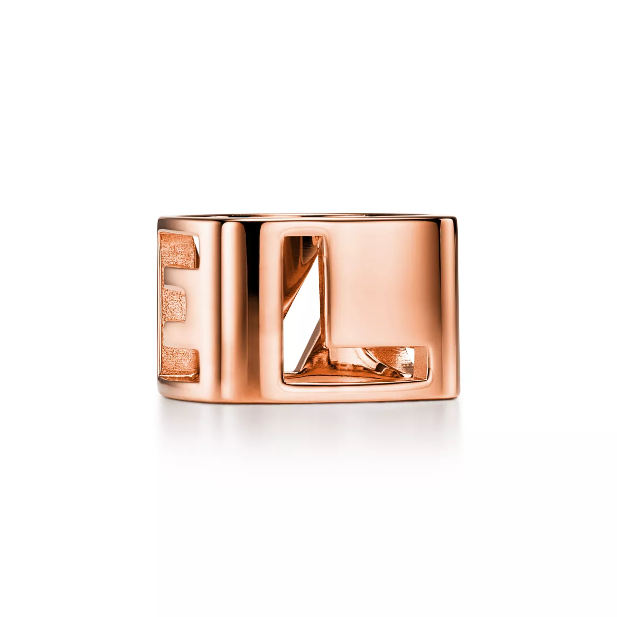 Inspired by an archival design from the 1970s, this bold metal scarf ring spells out “Love” in graphic cut-out letters. Crafted of 18k rose gold-plated brass with our signature attention to detail, it adds a striking touch to a Tiffany stole or square scarf.