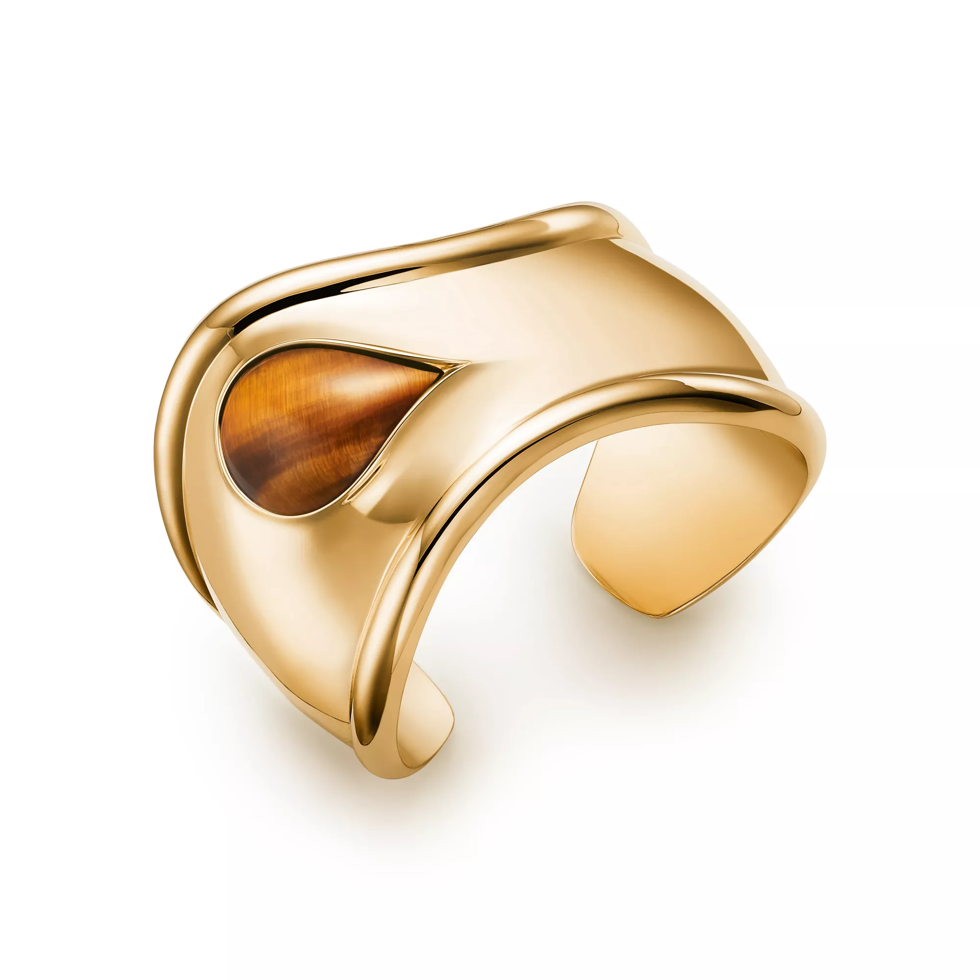 A nod to the sublime beauty found in nature, Elsa Peretti® carved stone Bone cuffs are expertly made by master craftspeople, who hand carve and inlay each stone. Powerfully feminine with an effortless ease, the groundbreaking Bone cuff design was first introduced in the 1970s. A twist on this iconic design, this 18k yellow gold Bone cuff honours the beauty of hand-set tiger's eye and reflects the designer's passion for smooth, sculpted surfaces.