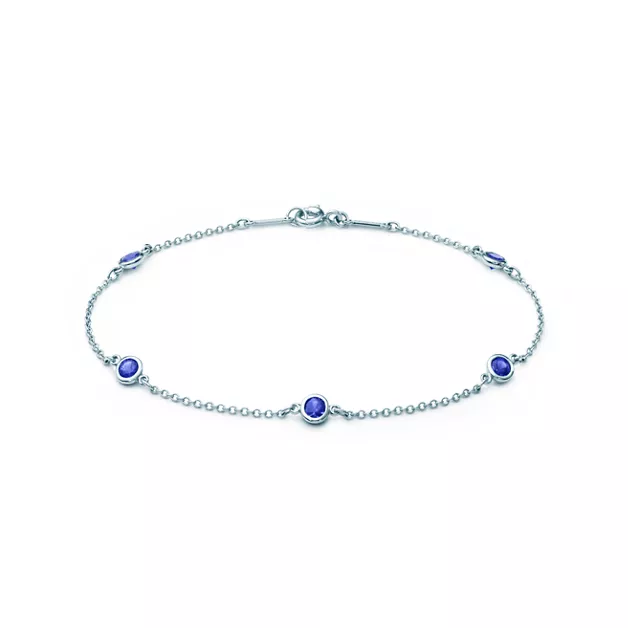 Bracelet in platinum with five round sapphires. 7" long. Carat total weight .55. Original designs copyrighted by the Nando and Elsa Peretti Foundation.