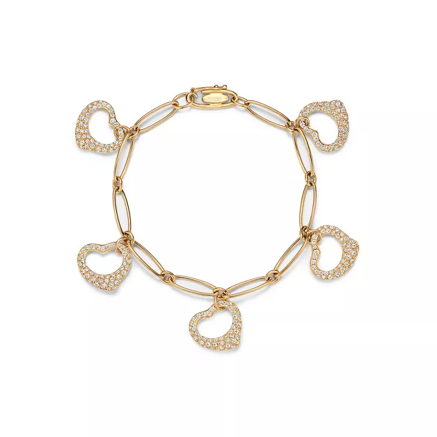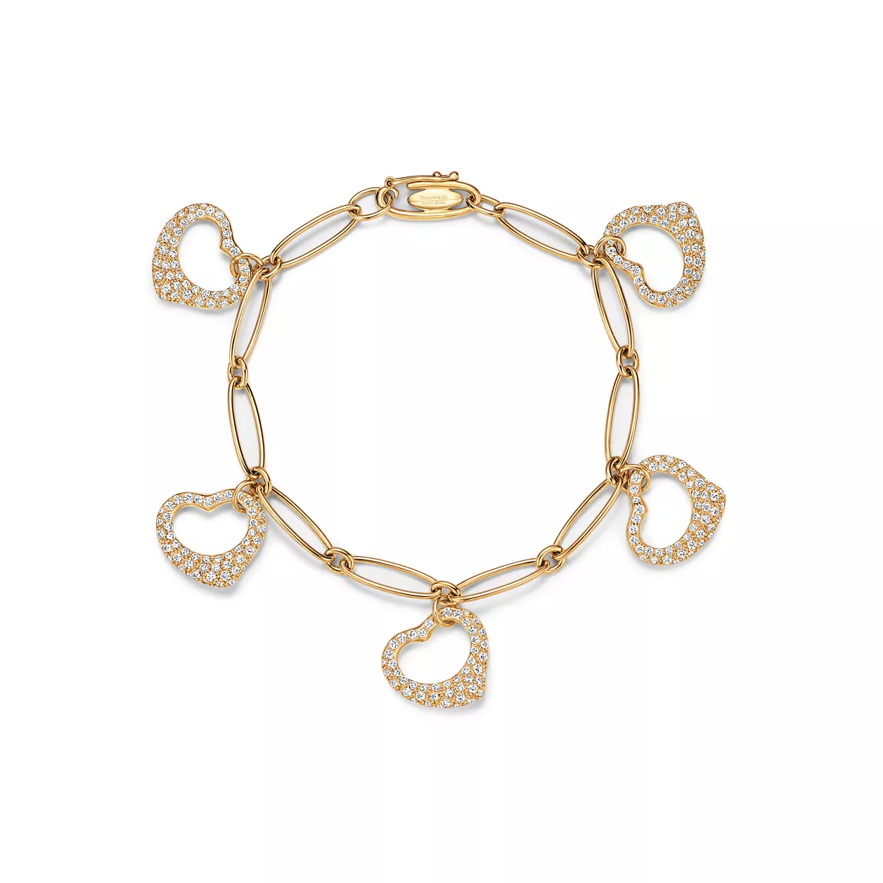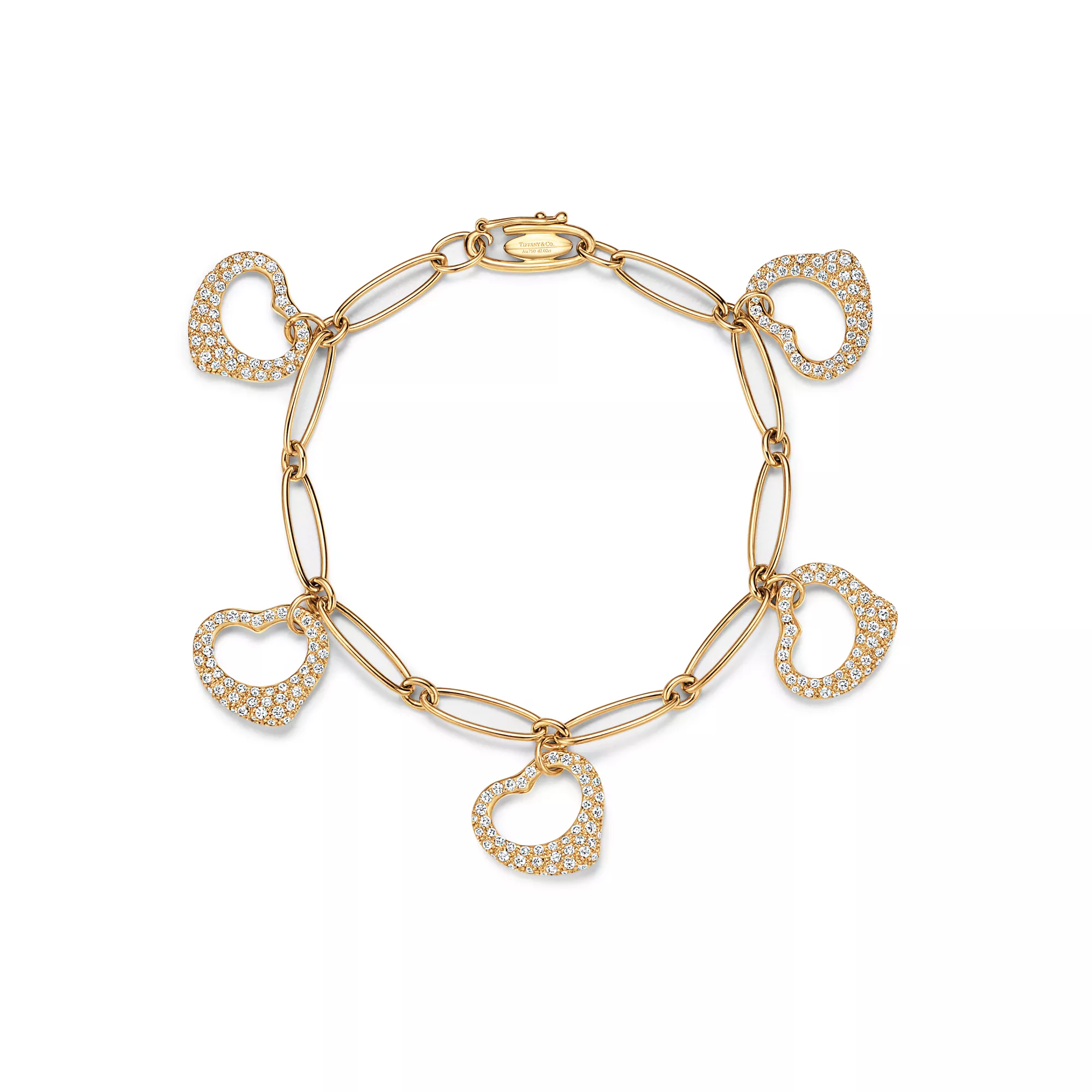 The simple, evocative shape of Elsa Peretti Open Heart designs is an expression of love's limitless bounds. A testament to Peretti’s affinity for craftsmanship and form, the collection reinterprets the heart shape with an organic and sculptural approach that transcends the sentimentality of this universal symbol. Wear this 18k yellow gold and pavé diamond design by itself or mix with your everyday bracelet stack for a bold look.