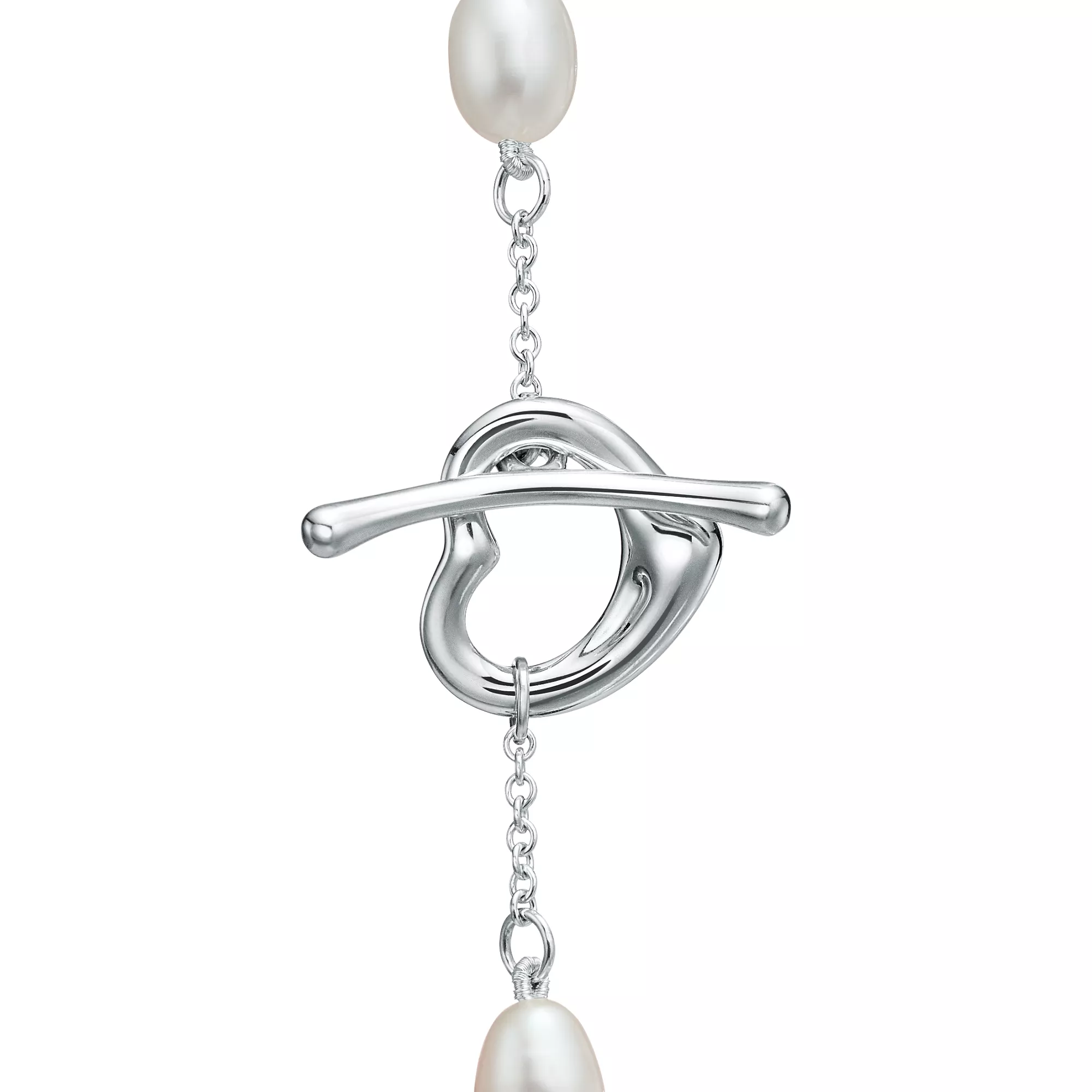 The simple, evocative shape of Elsa Peretti Open Heart designs celebrates the spirit of love. Elegant pearls pair perfectly with the delicate heart toggle closure.
