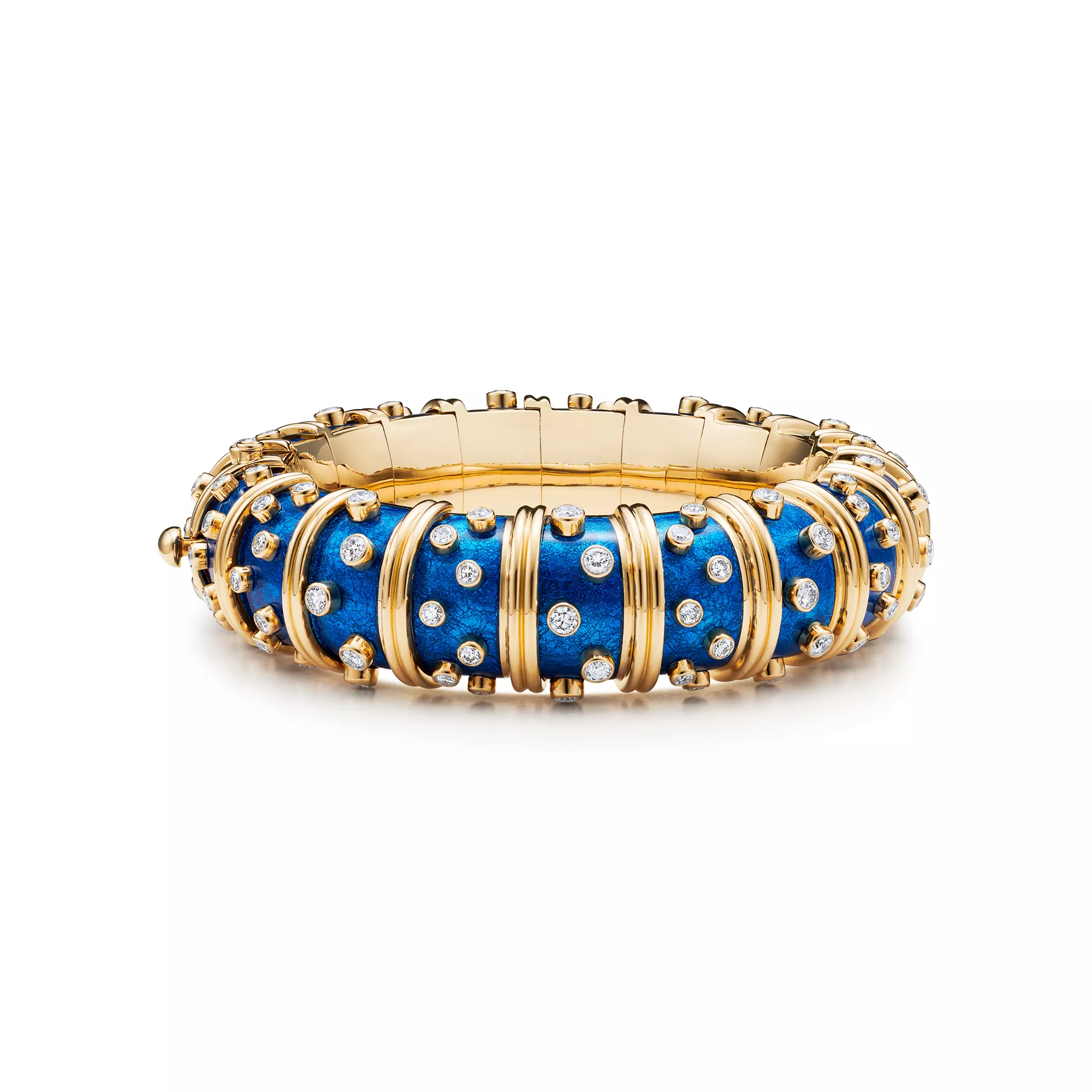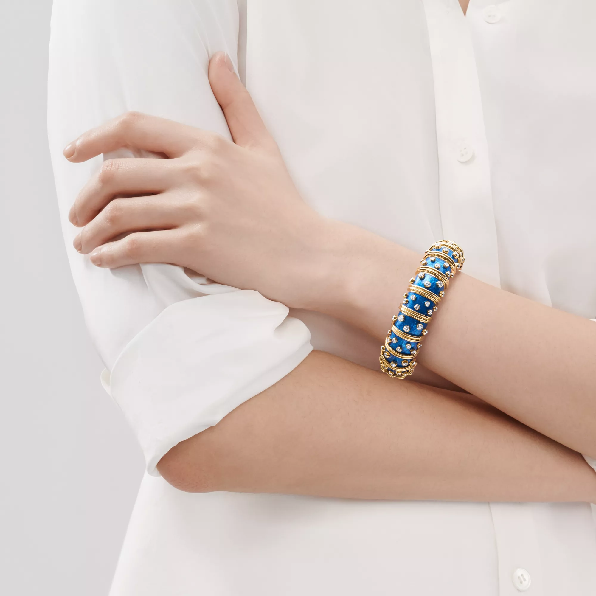 First introduced in 1962, Jean Schlumberger’s colourful vitreous enamel masterpieces are among the most iconic jewellery designs of all time. The 19th-century enamel art form is a complex, labour-intensive process of meticulously layering and firing enamel multiple times. For his signature paillonné pieces, enamel is repeatedly layered with alternating sheets of precious gold foil, creating rich hues with extraordinary depth and a shimmering luminosity. Few craftspeople in the world have the artistry and skill to execute these time-honoured techniques. A piece of design history, Jean Schlumberger’s magnificent enamel designs are beautifully accented with precious metals, with or without gemstones.