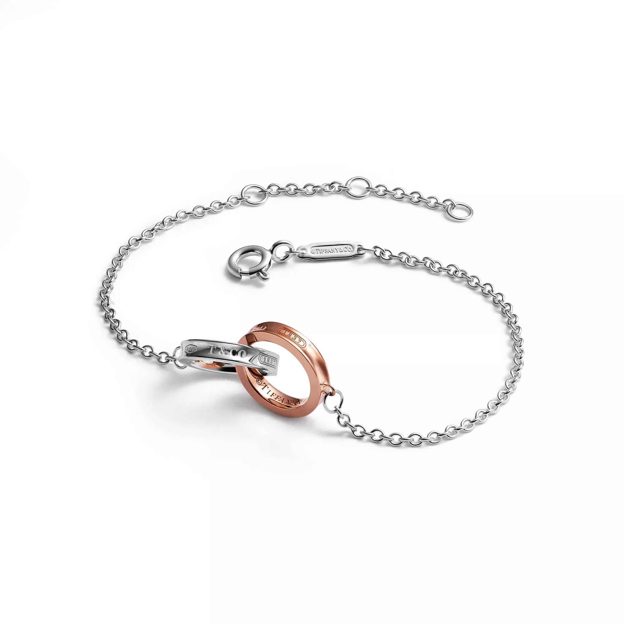 Enter your email address below. We’ll let you know when Tiffany 1837® Interlocking Circles Chain Bracelet in Sterling Silver and Rose Gold is launched.