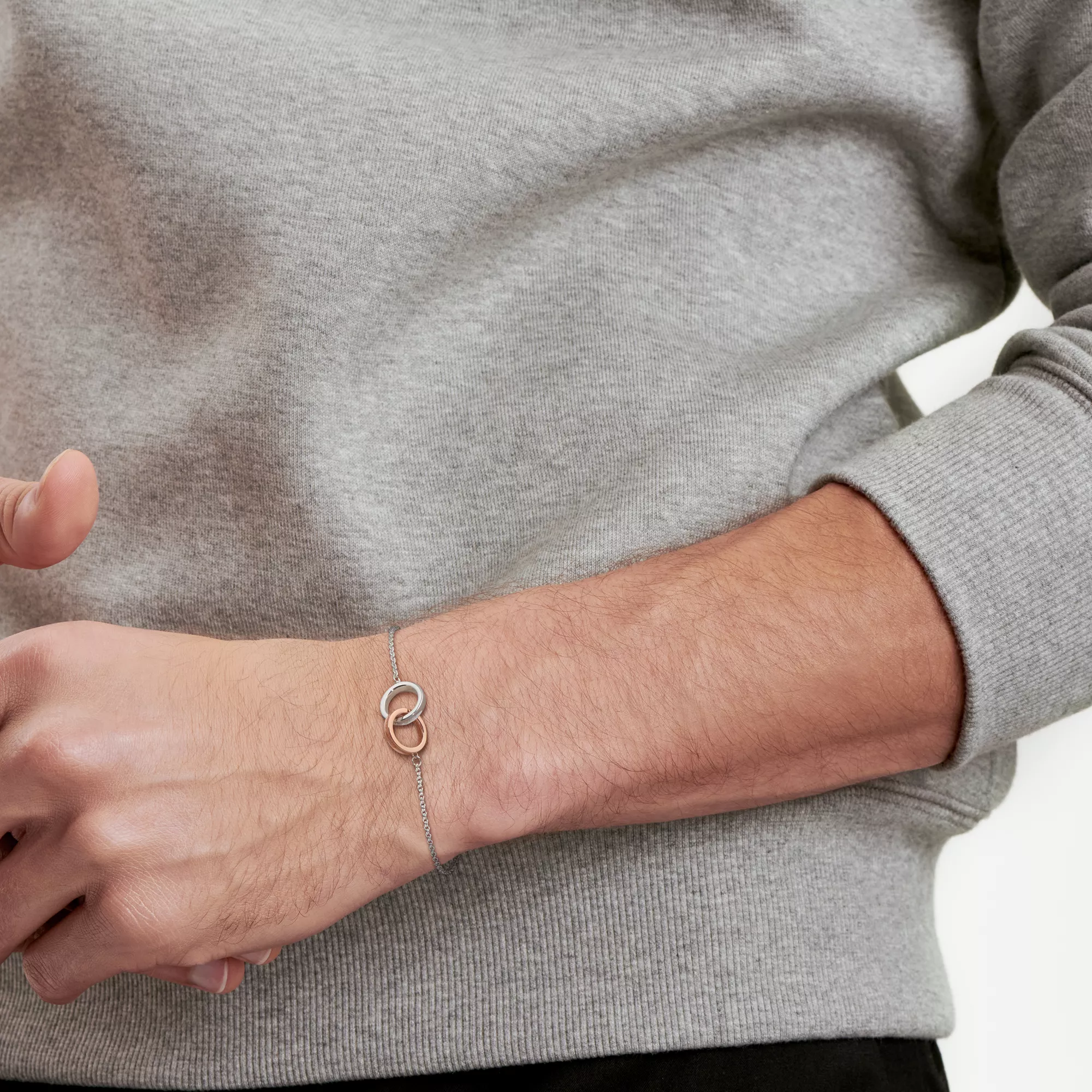 Interlocking Circles Chain Bracelet in Sterling Silver and Rose Gold