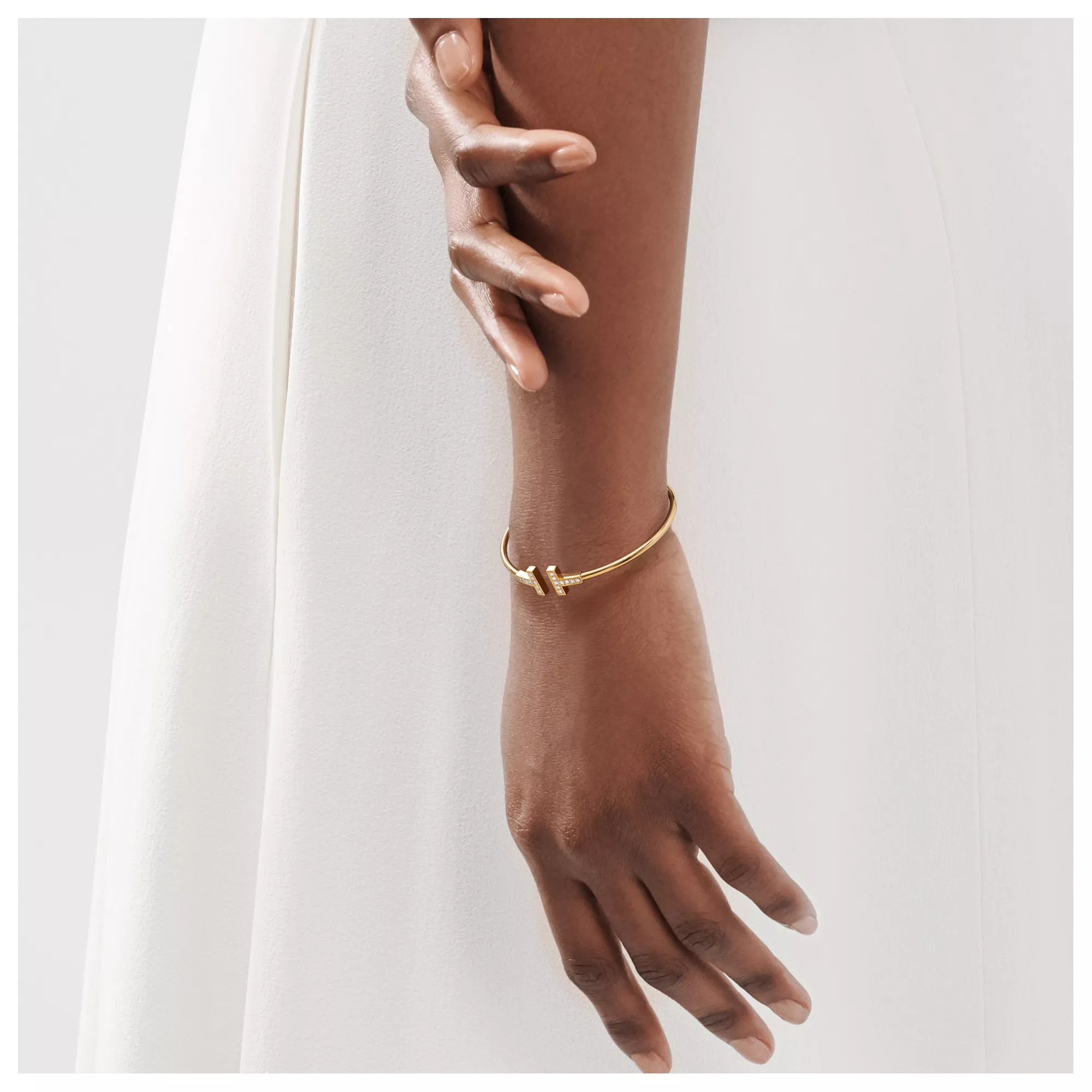 T by Tiffany diamond bracelets are inspired by an archival bracelet from 1975. T is an homage to the House’s iconic motif and the spirit of New York, which founder Charles Lewis Tiffany regarded as the place of promise and possibilities.