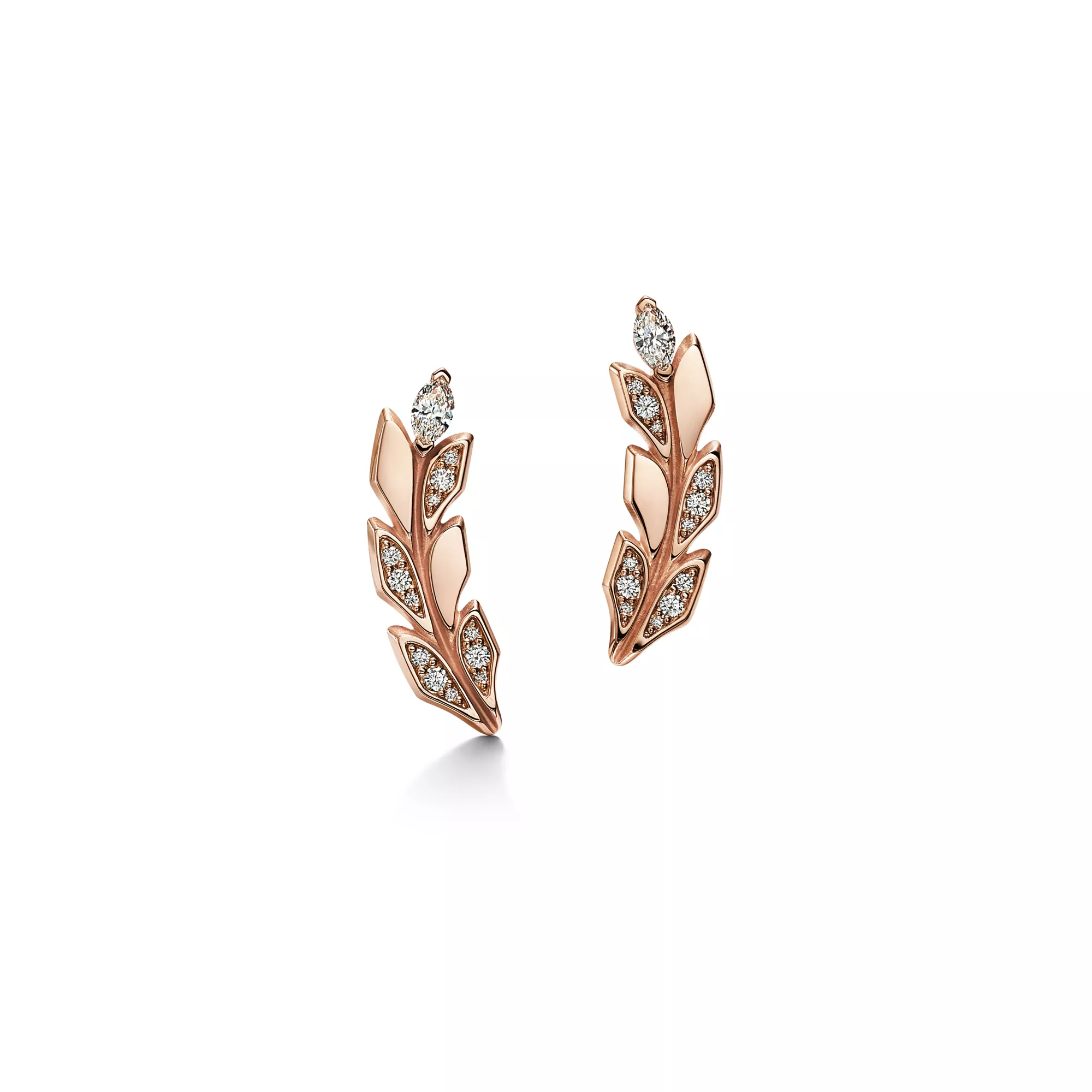 Inspired by the natural world, Tiffany Victoria designs capture the fluid movement of flowers, vines and leaves with a mix of expertly cut diamonds. These climber vine earrings are crafted of 18k rose gold that features a contrast of high polish and sandblasted finishes. Round brilliant and marquise diamonds play off the light and accentuate the vine motif. When too many diamonds are never enough, Tiffany Victoria is the ultimate way to shine. For an unexpected look, pair your climber earrings with dramatic drop earrings or minimal studs.