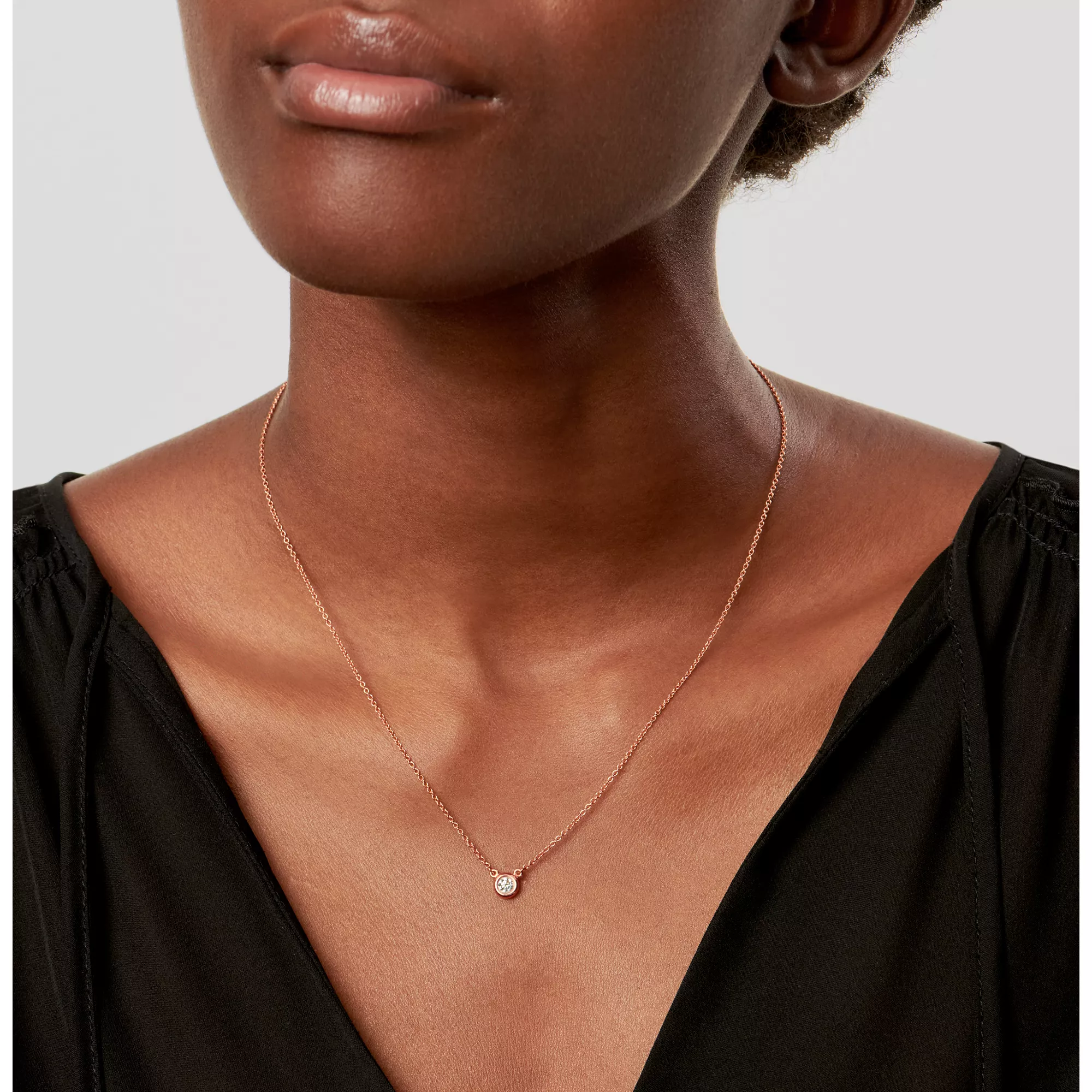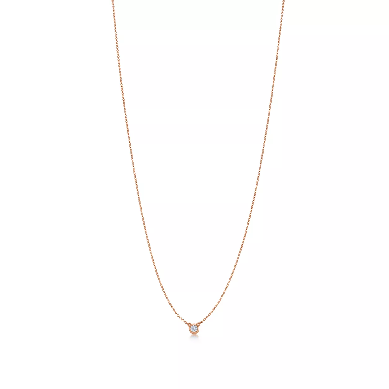 A single hand-polished diamond shines at the centre of this delicate and refined 18k rose gold pendant. Elsa Peretti’s revolutionary Diamonds by the Yard® collection features a combination of fine, fluid chains and bezel-set stones that forever changed the role of diamonds in fashion. Suspended like a single drop of light against the skin, layer this design with other Diamonds by the Yard® pendants and necklaces of varying lengths and metals for a look that’s all your own.