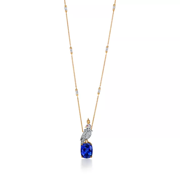 Bird on a Rock is one of the House’s most emblematic creations. Created by Jean Schlumberger for Tiffany & Co. in 1965, the diamond-encrusted bird is a symbol of joy, optimism and wonder. Today, the celebrated brooch transforms into an array of pendants. Epitomising the unrivaled craftsmanship for which Tiffany is known, every gemstone for each Bird on a Rock is hand selected and hand set by our artisans. This 18k yellow gold and platinum pendant features a bird set with diamonds and pink sapphires on a cushion-cut tanzanite "rock."