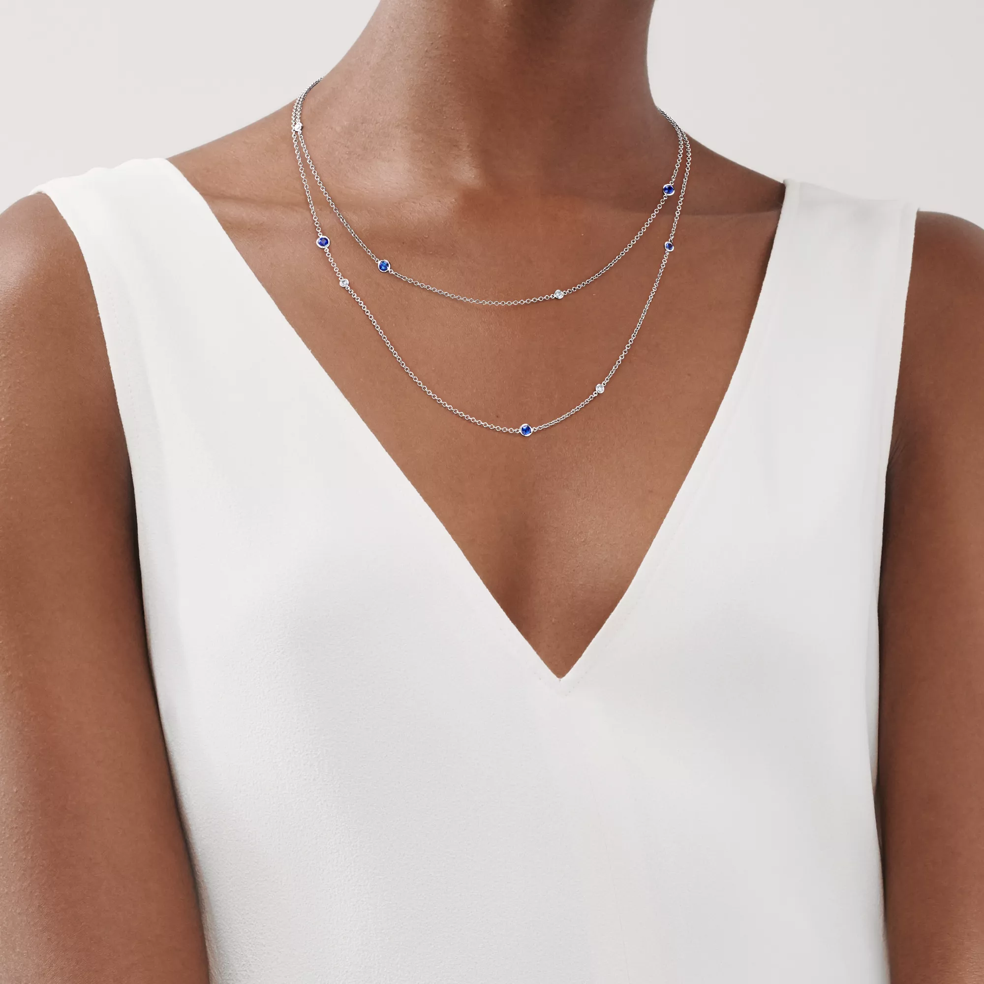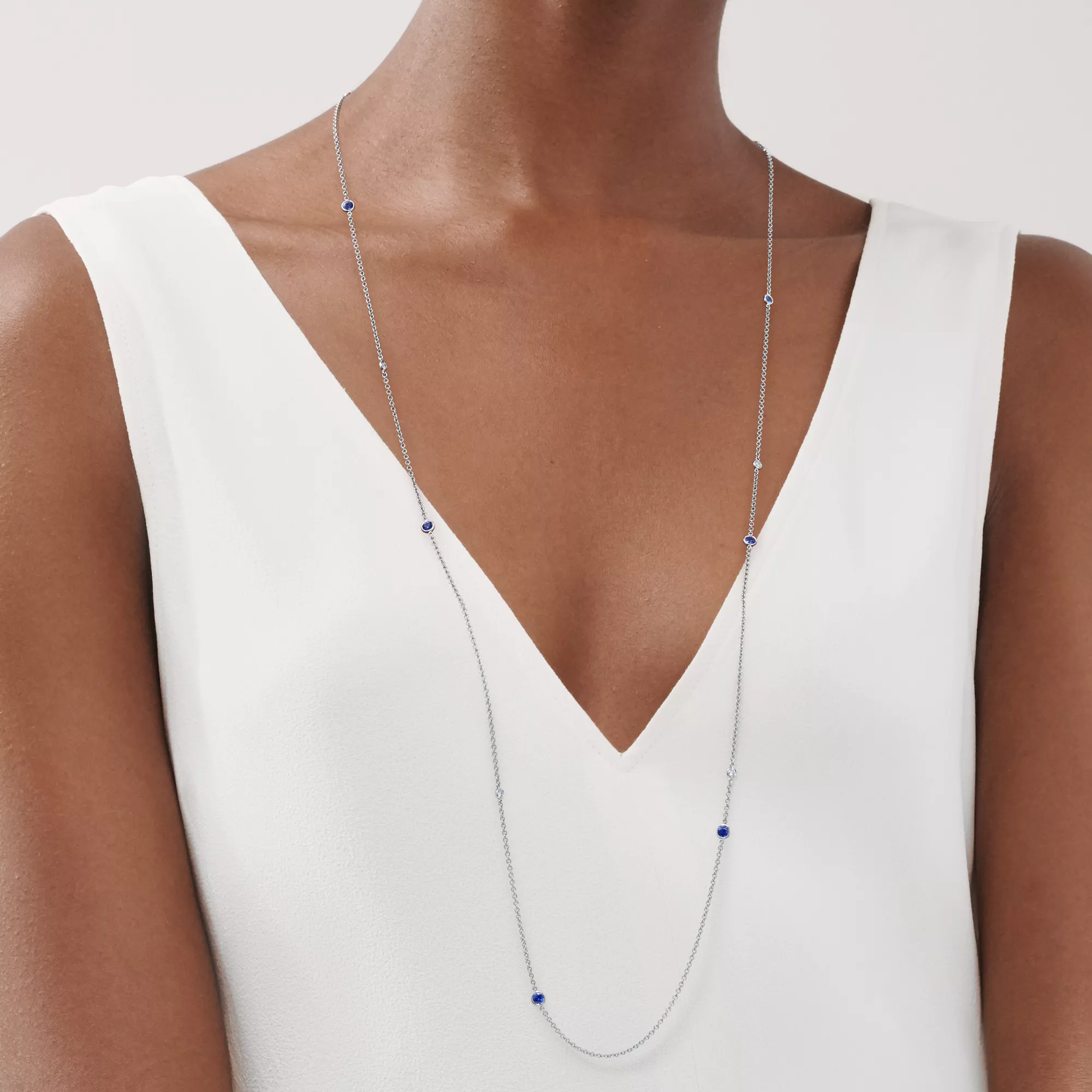 Elsa Peretti® Color by the Yard Sprinkle Necklace in Platinum with Sapphires and Diamonds