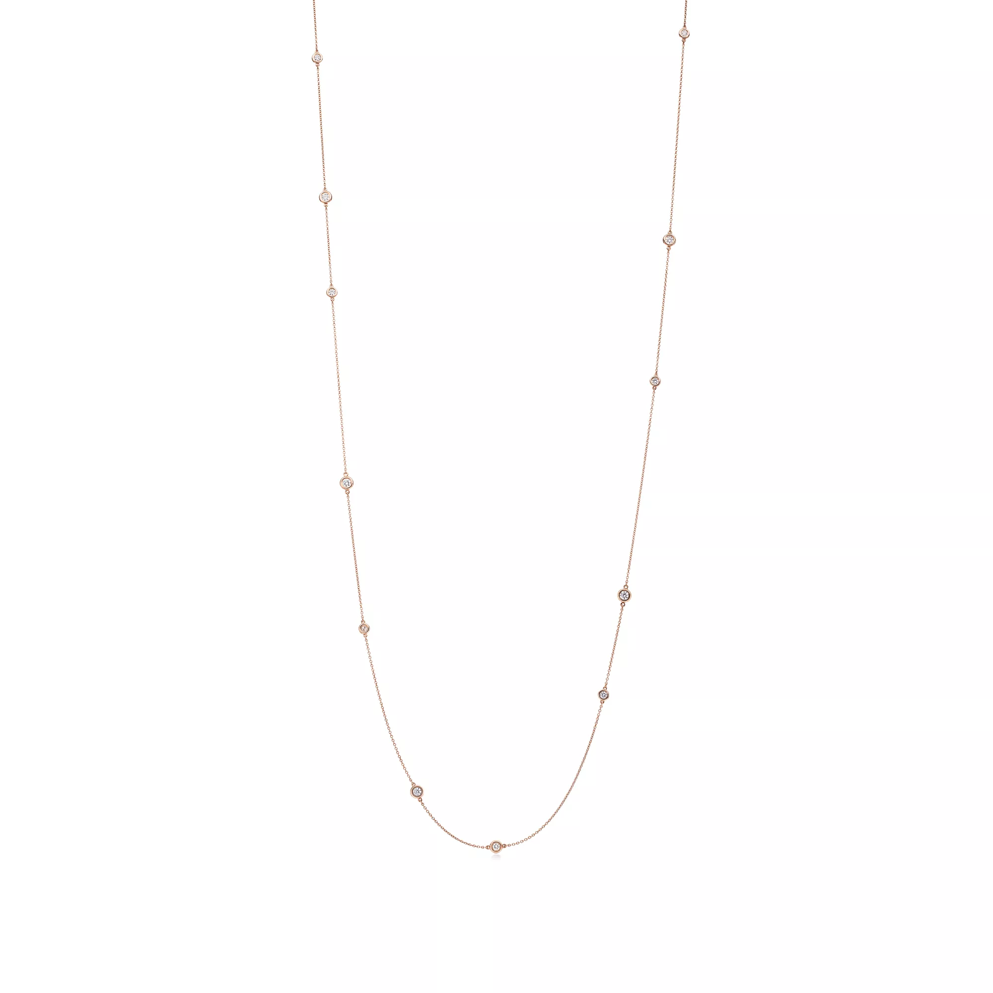 A reinvention of the classic diamond necklace, the Elsa Peretti® Diamonds by the Yard® collection features bezel-set stones that shimmer against the skin. Dazzling diamonds sprinkled along the chain create this stunning design.