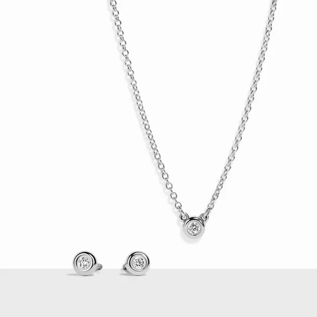Elsa Peretti’s revolutionary Diamonds by the Yard® collection features a combination of fine, fluid chains and bezel-set stones that forever changed the role of diamonds in fashion. This set brings together the collection’s diamond pendant with a pair of diamond earrings, both crafted in sterling silver. Wear the designs together for maximum impact. The set comes with a keepsake jewelry box in Tiffany Blue®.