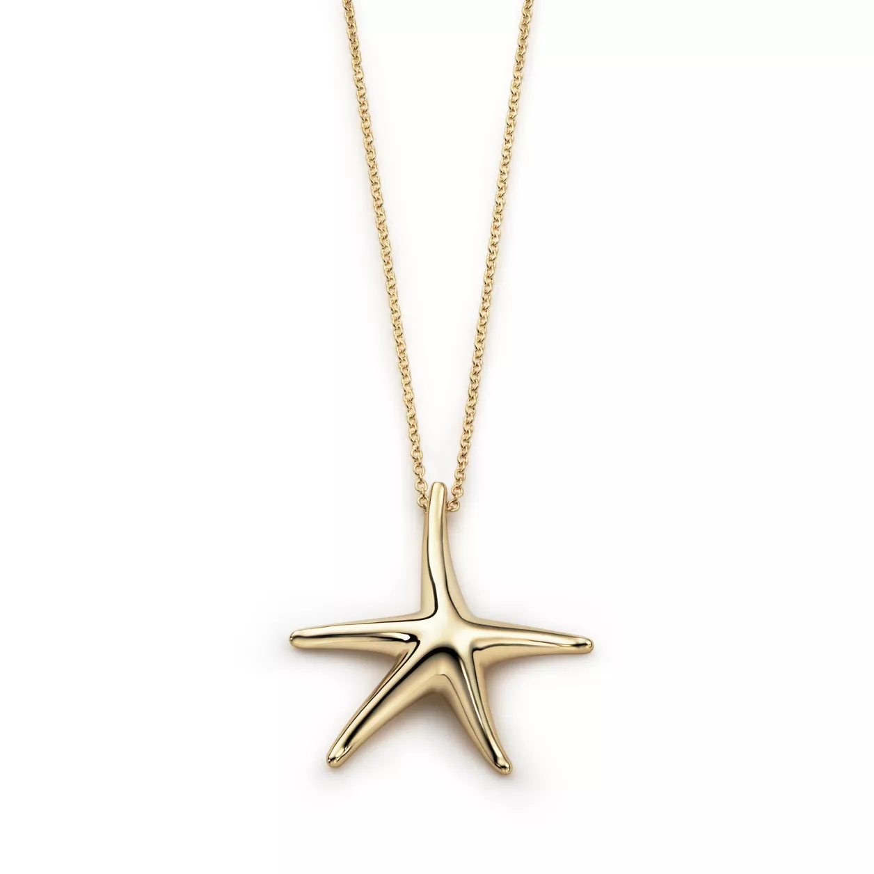 The starfish evokes life beneath the waves and in the celestial heavens. Pendant in 18k gold, 28 mm. On a 16" chain. Original designs copyrighted by the Nando and Elsa Peretti Foundation.