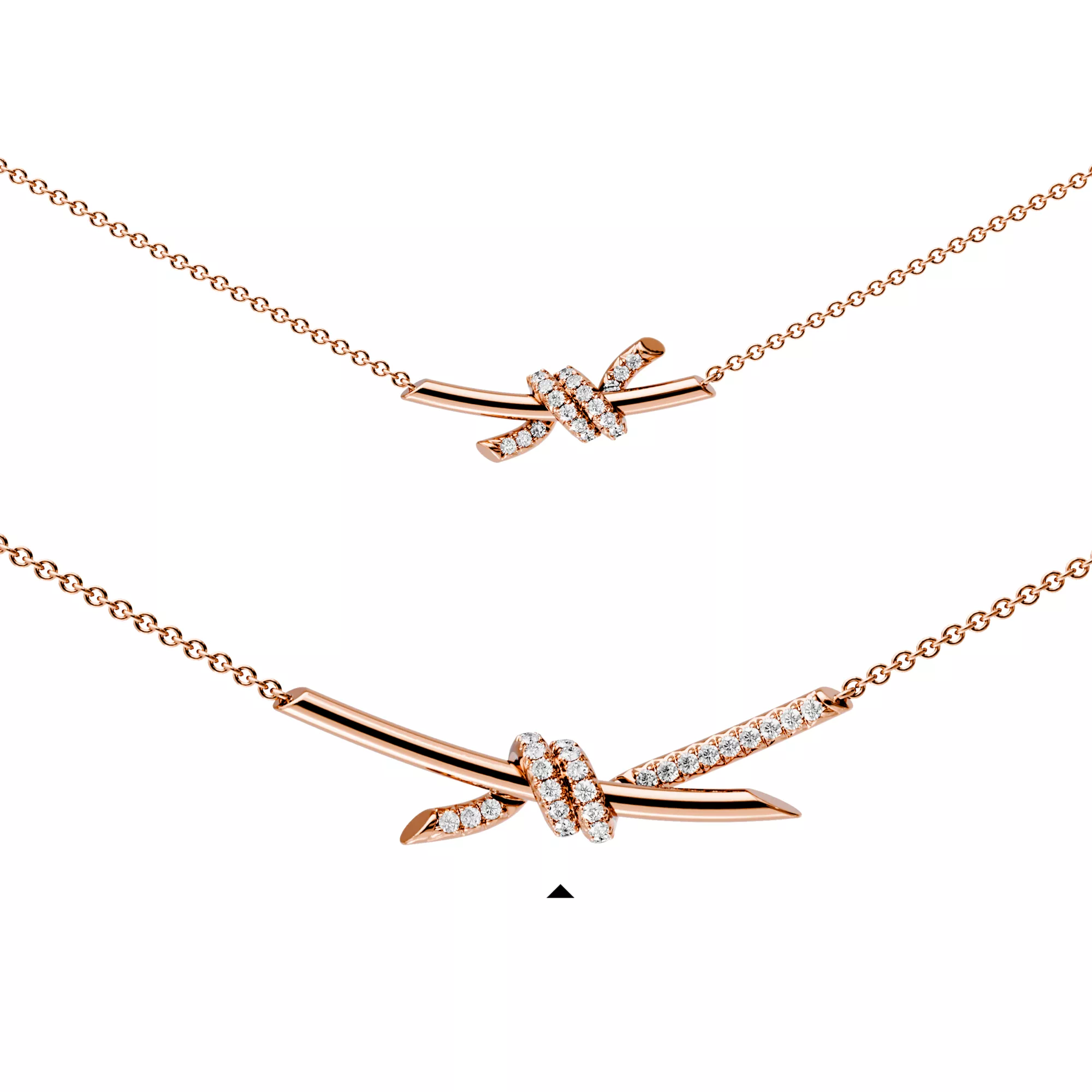 Tiffany Knot is an expression of love’s unwavering bonds. Inspired by an archival bow crafted in 1889, Knot is a symbol of life’s most enduring ties and meaningful connections. This pendant is crafted with rose gold and pavé diamonds, then polished by hand for high shine. Each round brilliant diamond—specifically chosen to meet Tiffany’s high standards—is hand set at precise angles to maximize brilliance. Wear this pendant on its own or partnered with classic silhouettes for an unexpected pairing. Crafted with precision, this pendant is an elegant gift for birthdays, anniversaries or the holidays.