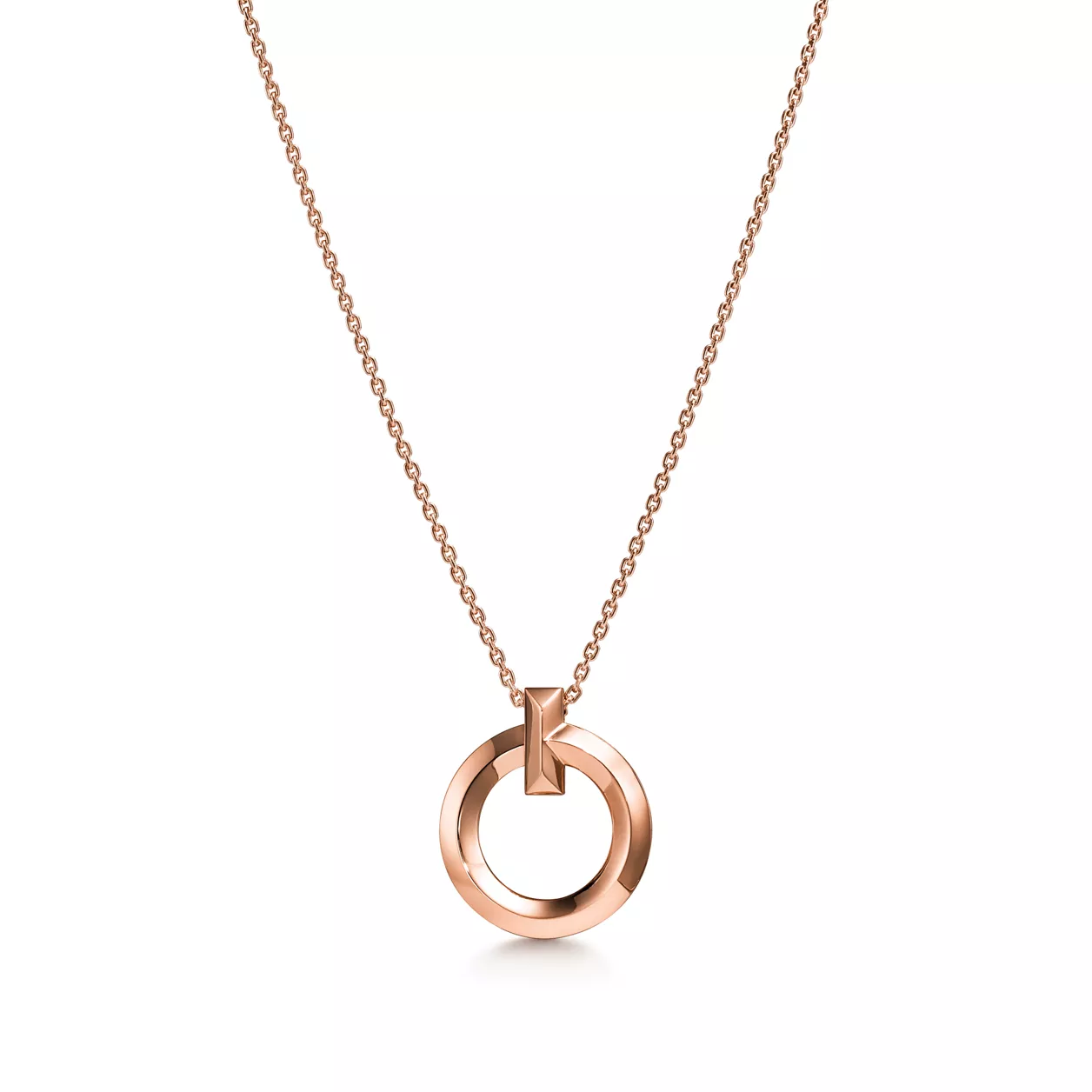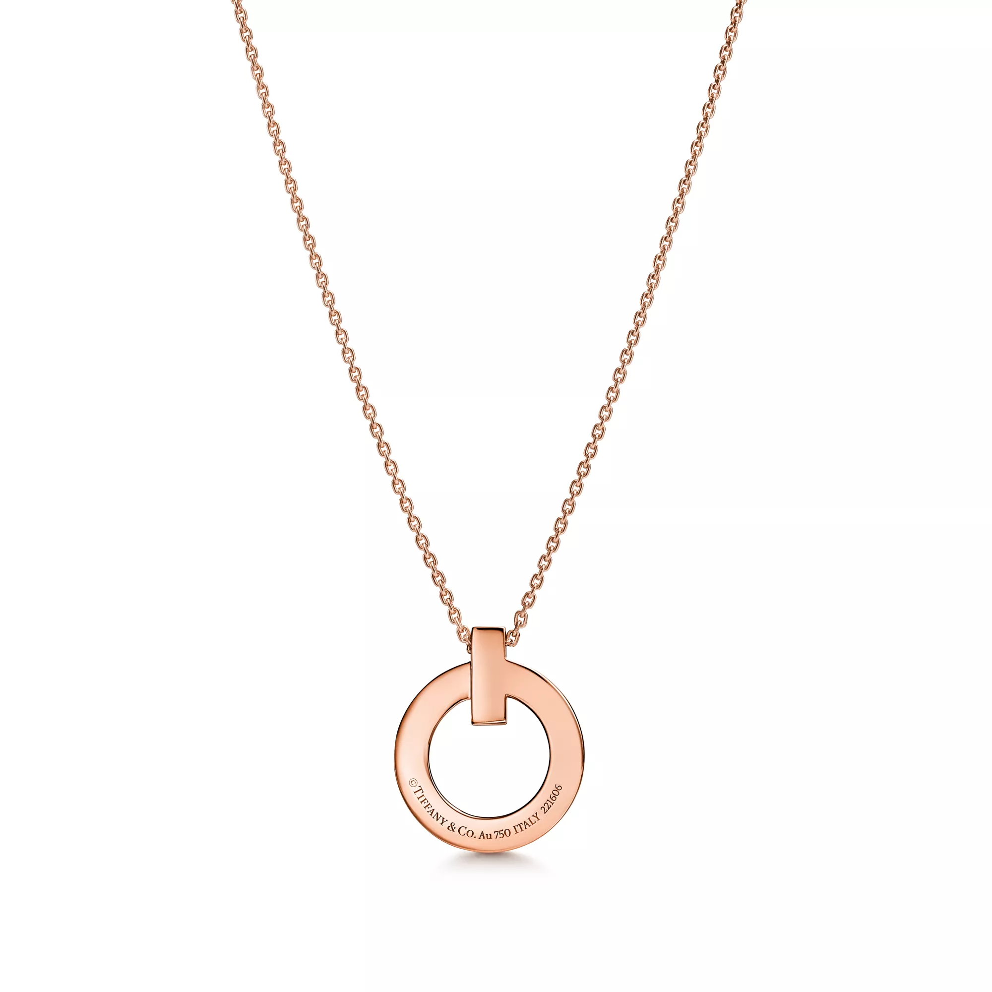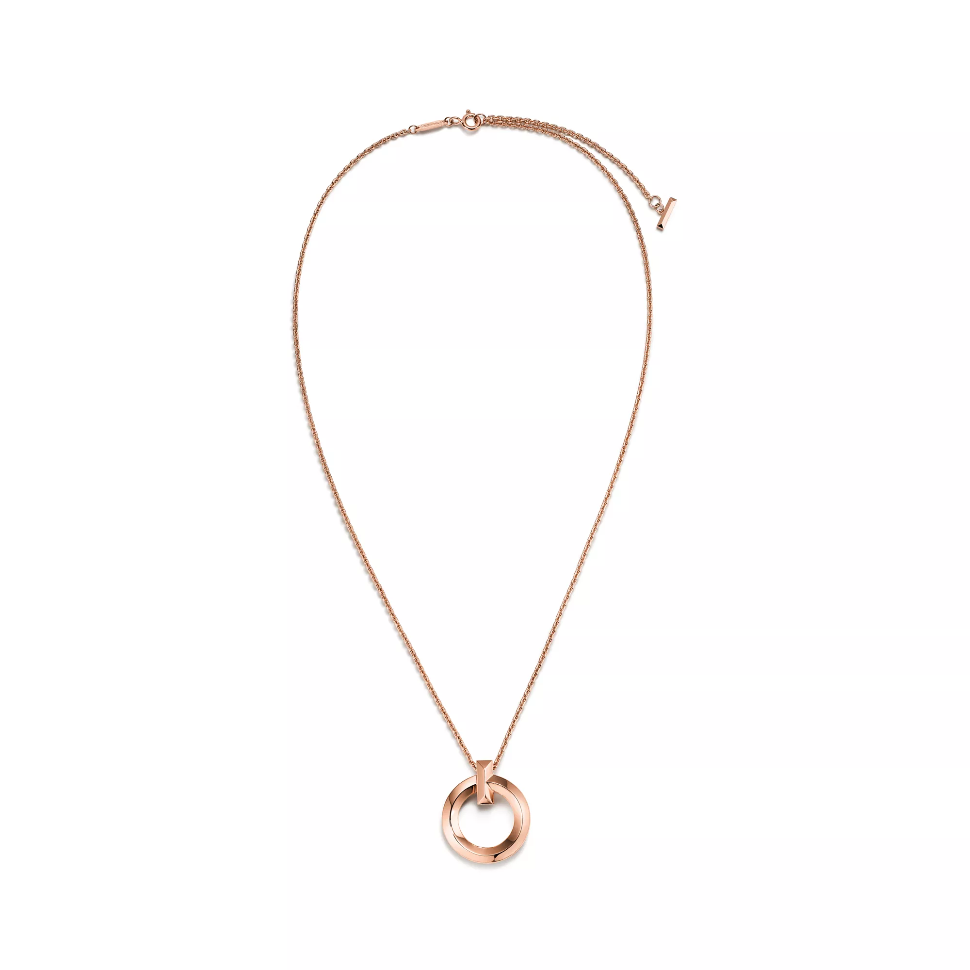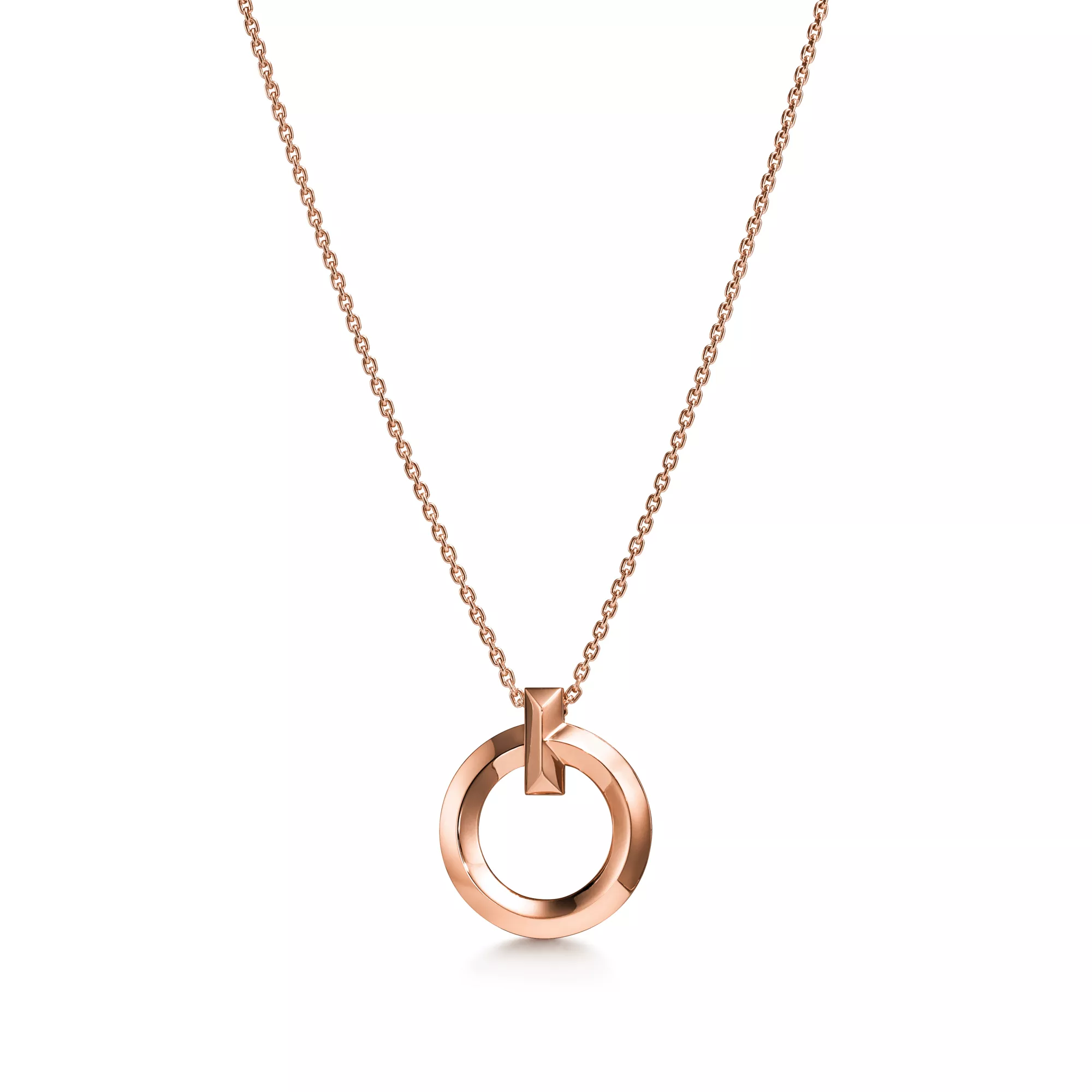 Tiffany T is an expression of love’s endless potential. Inspired by an archival bracelet from 1975, T is an homage to the House’s iconic motif and the spirit of New York, which founder Charles Lewis Tiffany regarded as the place of promise and possibilities. Precisely crafted in 18k rose gold, this small circle pendant features a beveled edge that makes a striking statement. Wear it solo or layer with necklaces in different lengths for a distinctive look.