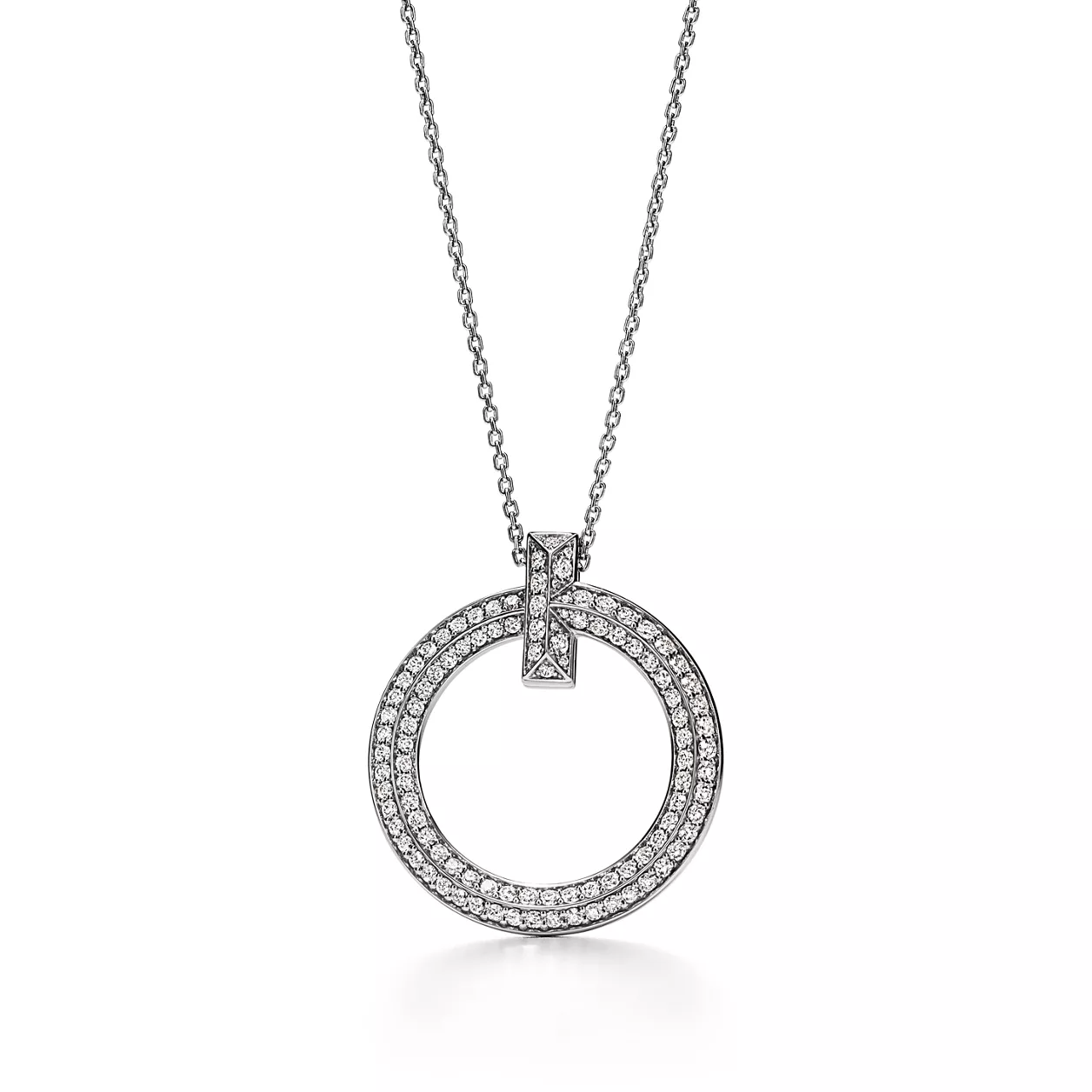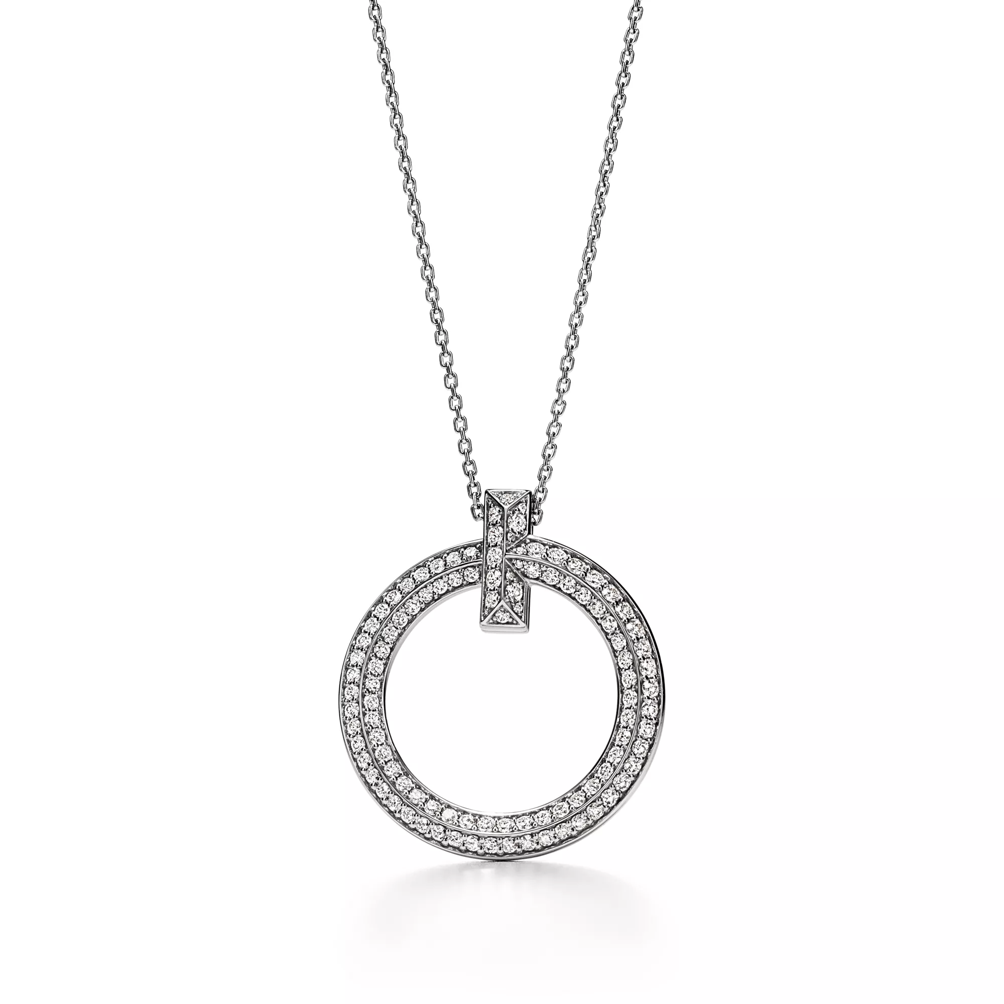 Tiffany T T1 Circle Pendant in 18k White Gold with Diamonds, Large