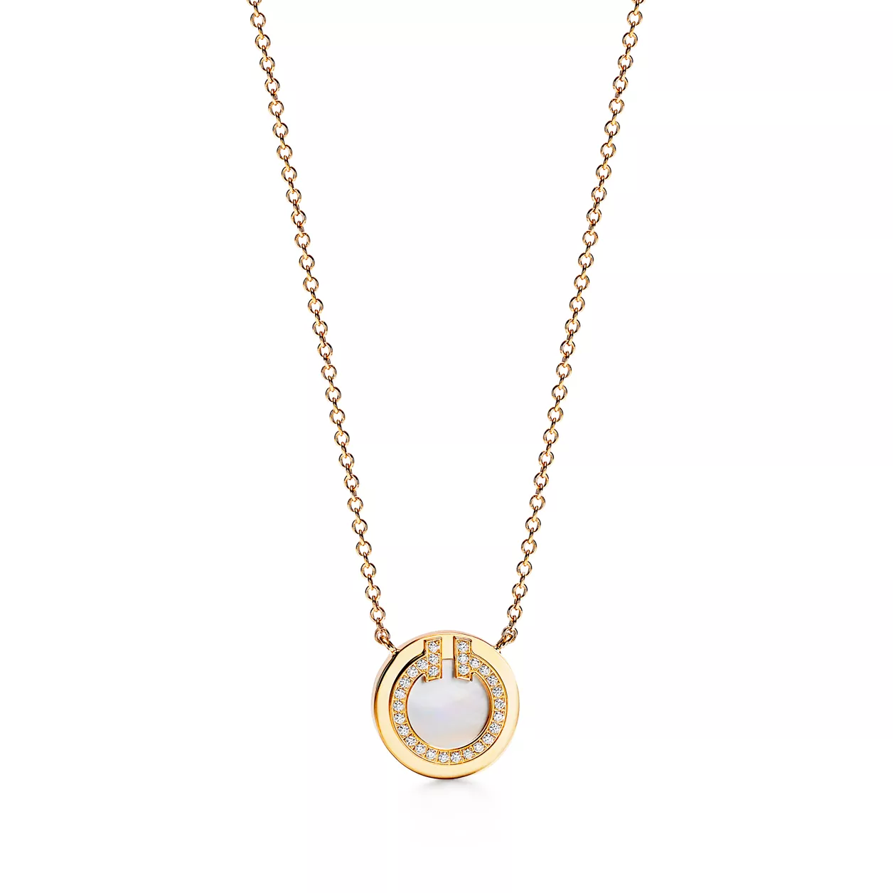 Tiffany T is an expression of love’s endless potential. Inspired by an archival bracelet from 1975, T is an homage to the House’s iconic motif and the spirit of New York, which founder Charles Lewis Tiffany regarded as the place of promise and possibilities. This circle pendant features mother-of-pearl, a natural, iridescent material found in oyster shells. The luminous pendant is traced with diamonds, resulting in a modern design with high shine and elegant lustre. Showcase your personal style by pairing this pendant with other Tiffany designs for a bold look.