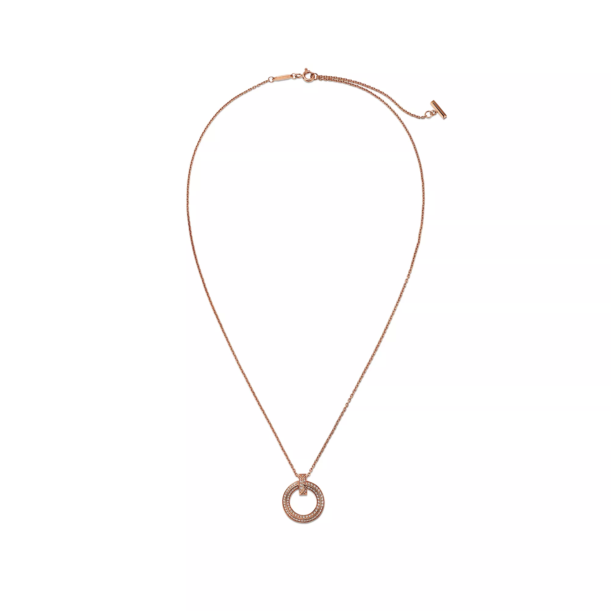 Tiffany T is an expression of love’s endless potential. Inspired by an archival bracelet from 1975, T is an homage to the House’s iconic motif and the spirit of New York, which founder Charles Lewis Tiffany regarded as the place of promise and possibilities. This circle pendant is crafted in 18k rose gold and features a beveled edge set with pavé diamonds for maximum shine. Wear it on its own or layer with other Tiffany T necklaces and pendants for an unexpected look.