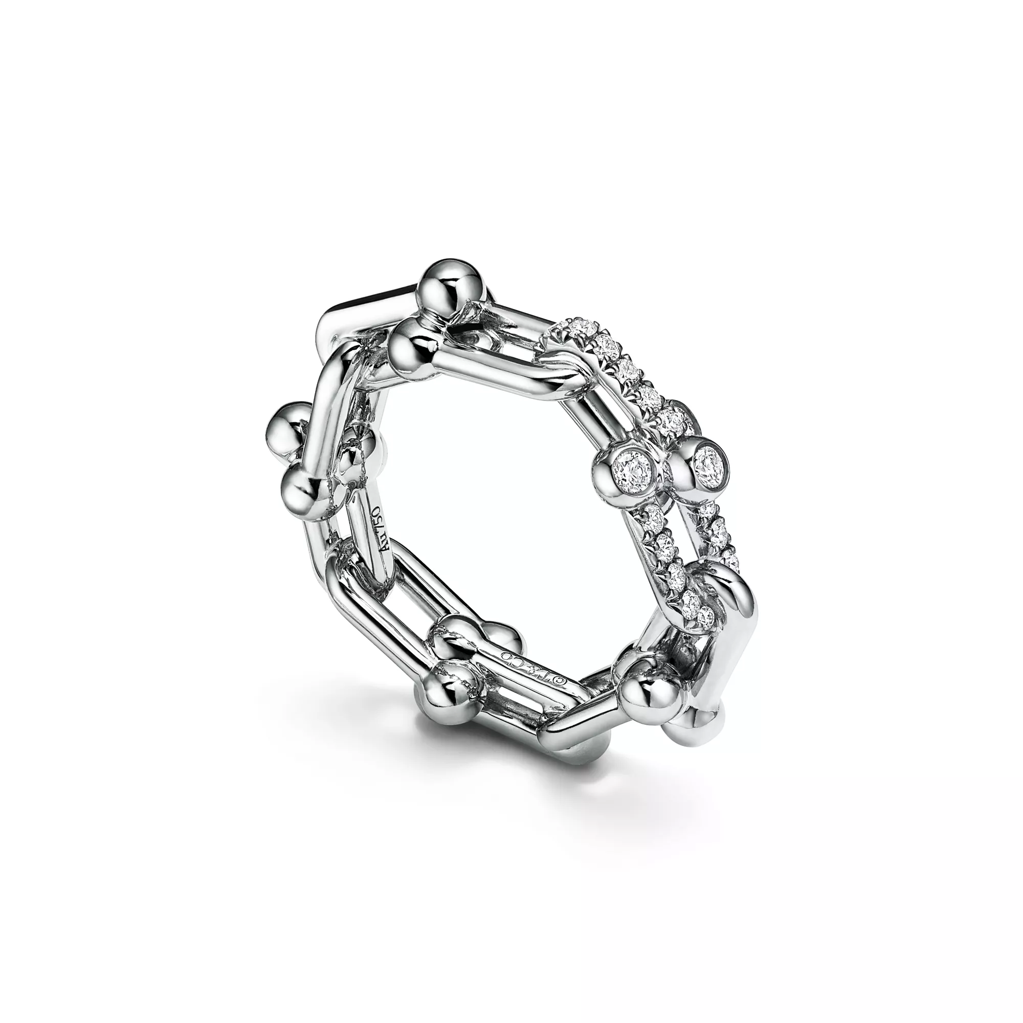 Tiffany HardWear Small Link Ring in White Gold with Diamonds