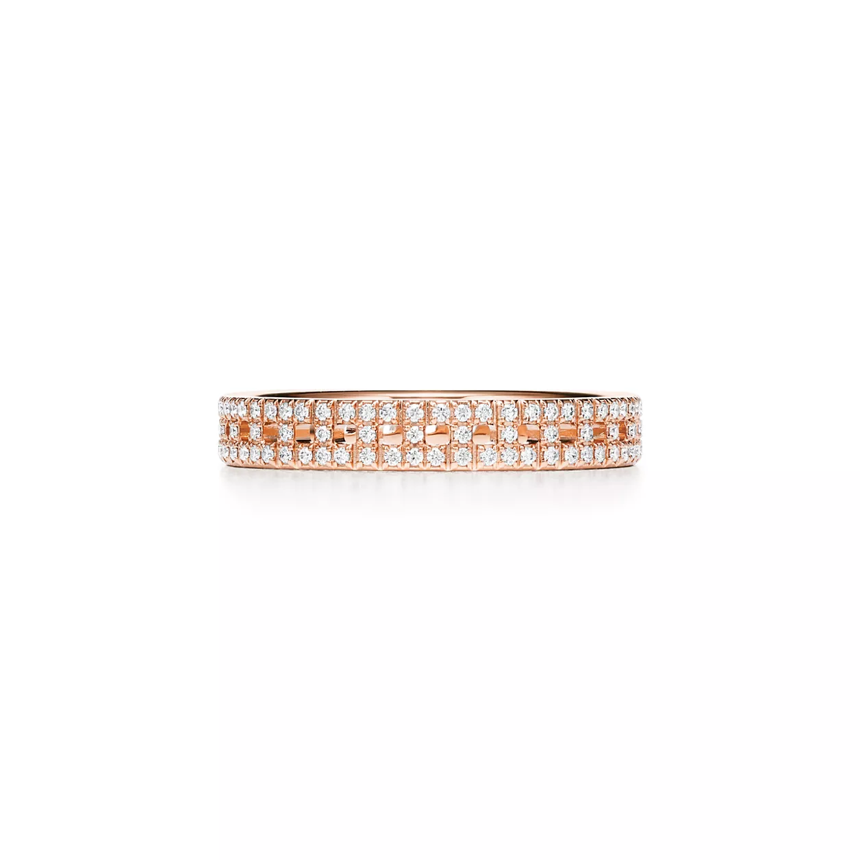 Tiffany T True Narrow Ring in Rose Gold with Pavé Diamonds
